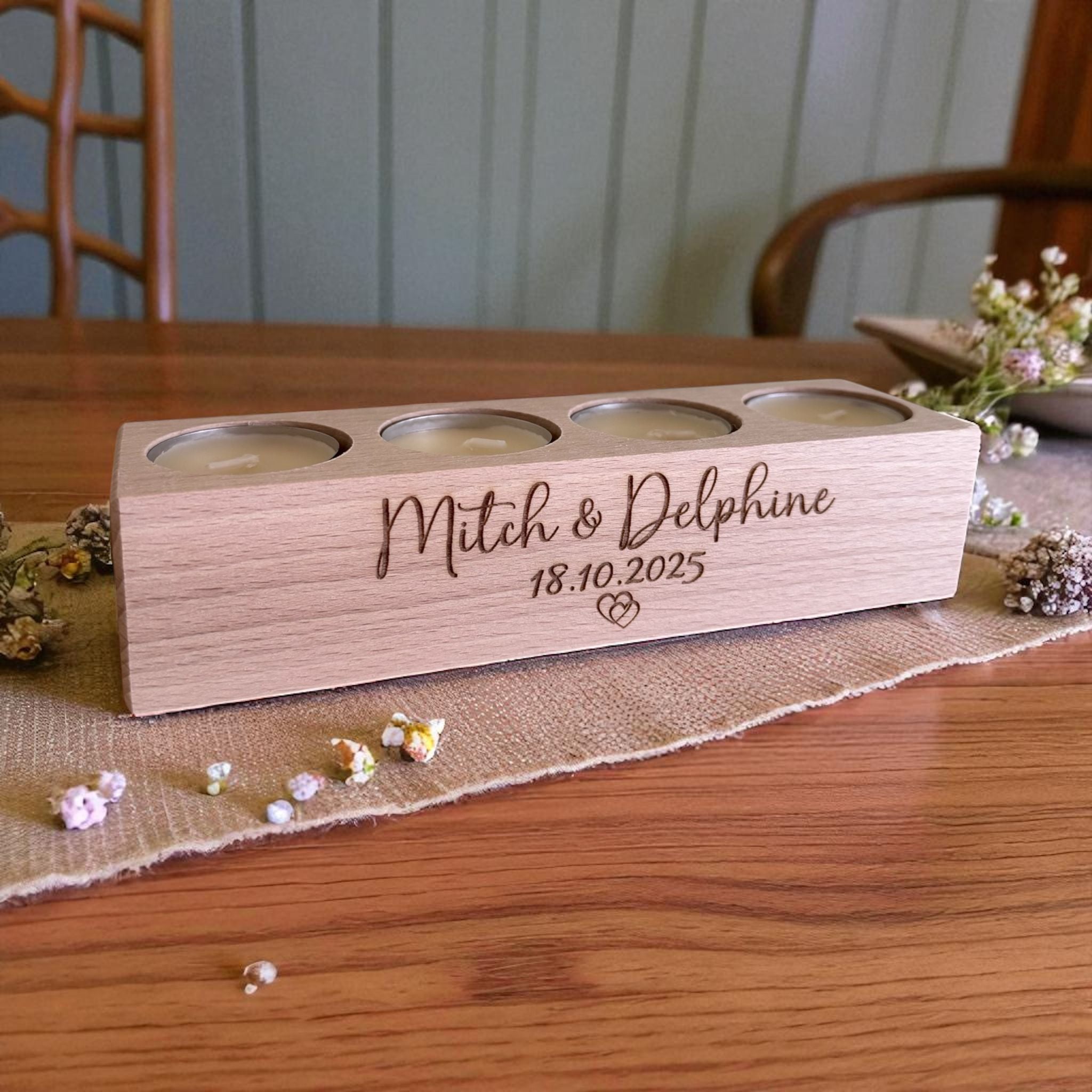 Handgemaakte theelichthouder in hartvorm – acrylhars met unieke afwerking